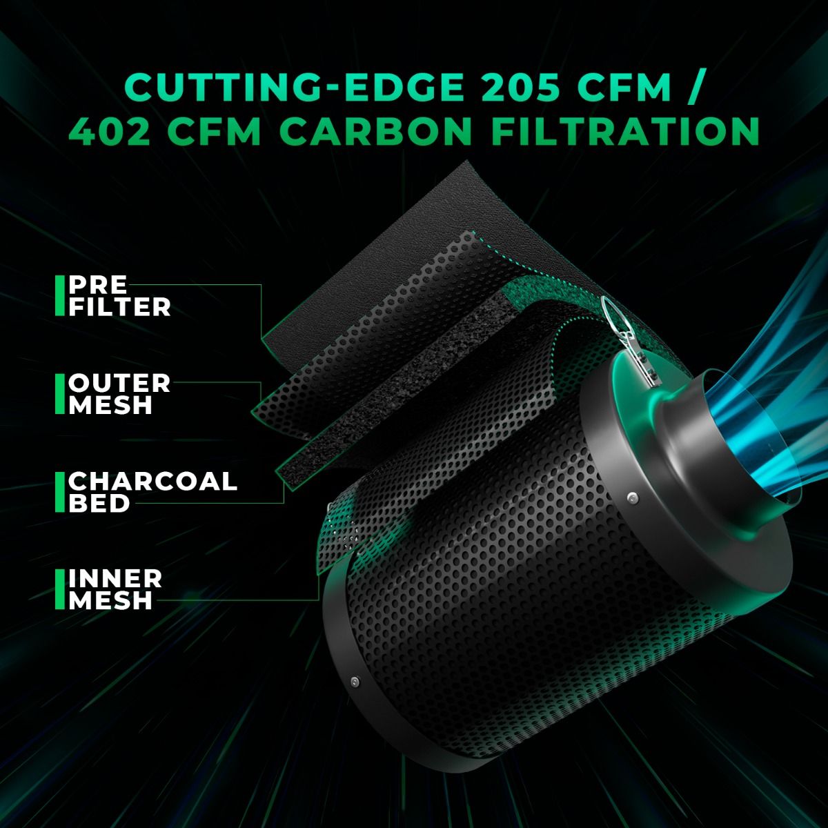 Fan:4″ inline fan with speed controller & carbon filter combo